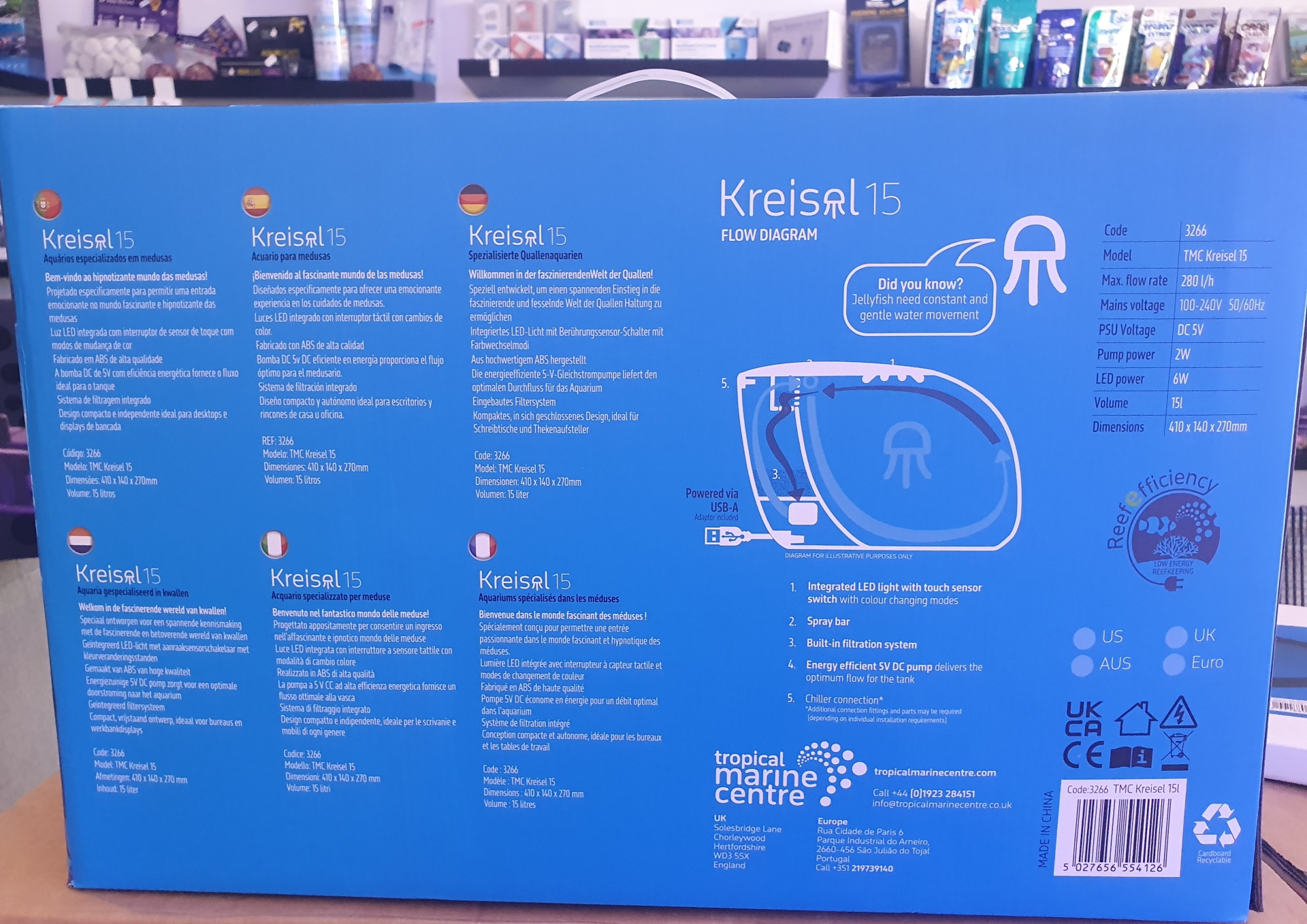 Projetado especificamente para permitir uma entrada emocionante no mundo fascinante e hipnotizante da criação de águas-vivas.Luz LED integrada com interruptor de sensor de toque com modos de mudança de cor: Vermelho, Verde, Azul, Branco Quente, Amarelo, Rosa, Azul Claro, Branco Frio e modo de mudança de cor.