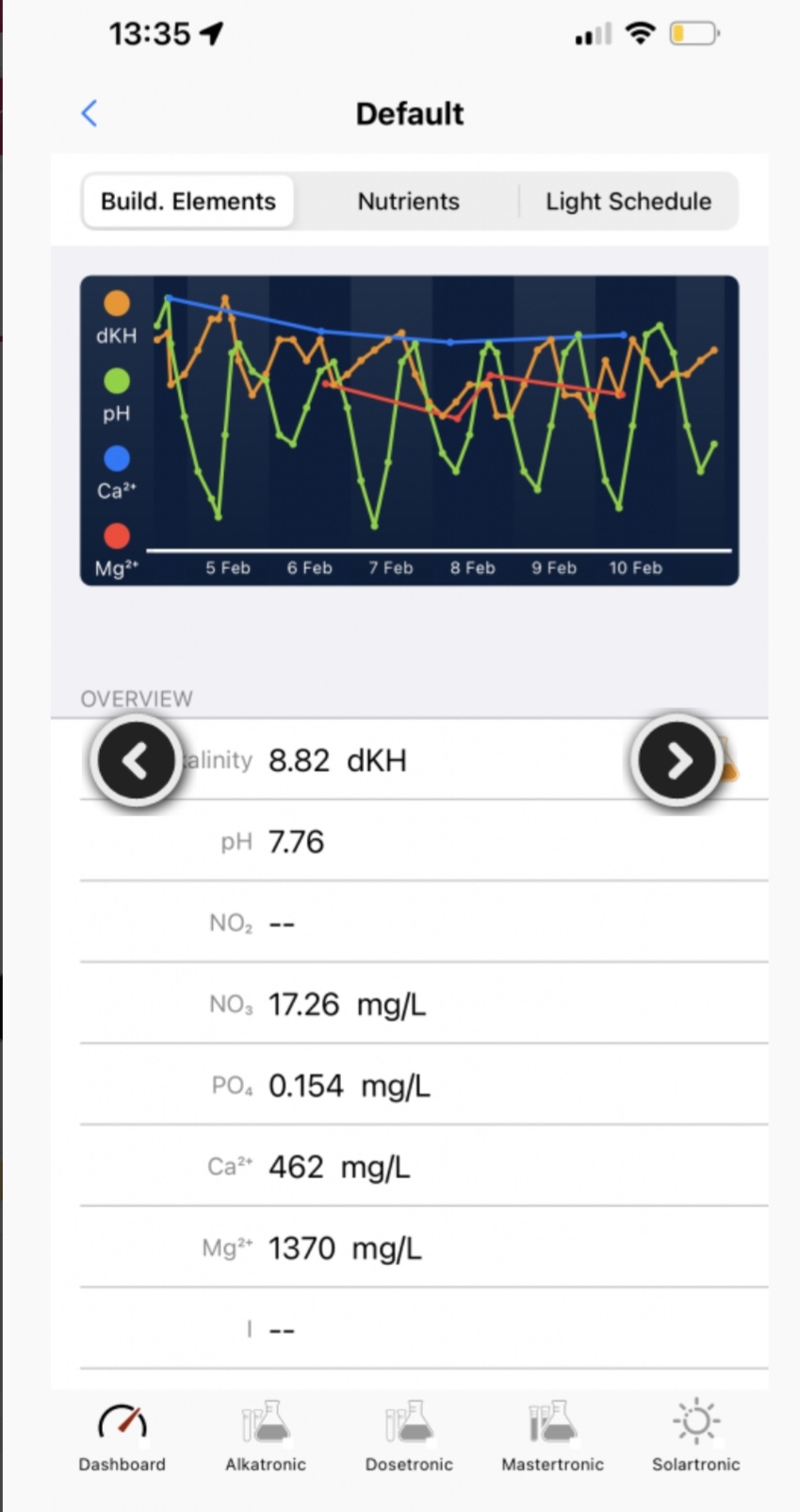 A alcalinidade (dKH) é o principal elemento que muda rapidamente em questão de horas. Monitorando apenas o dKH, você pode saber se outros equipamentos estão funcionando corretamente ou não.