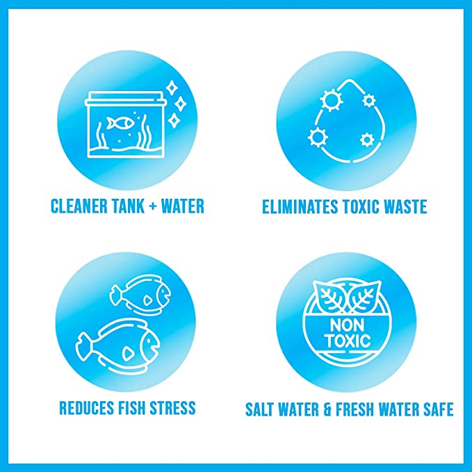 Este produto é de cor preta e pode tingir ligeiramente a água do seu aquário. Não se preocupe. O ingrediente ativo é um produto natural e ajudará a clarificar a água, bem como a digerir os orgânicos do aquário.