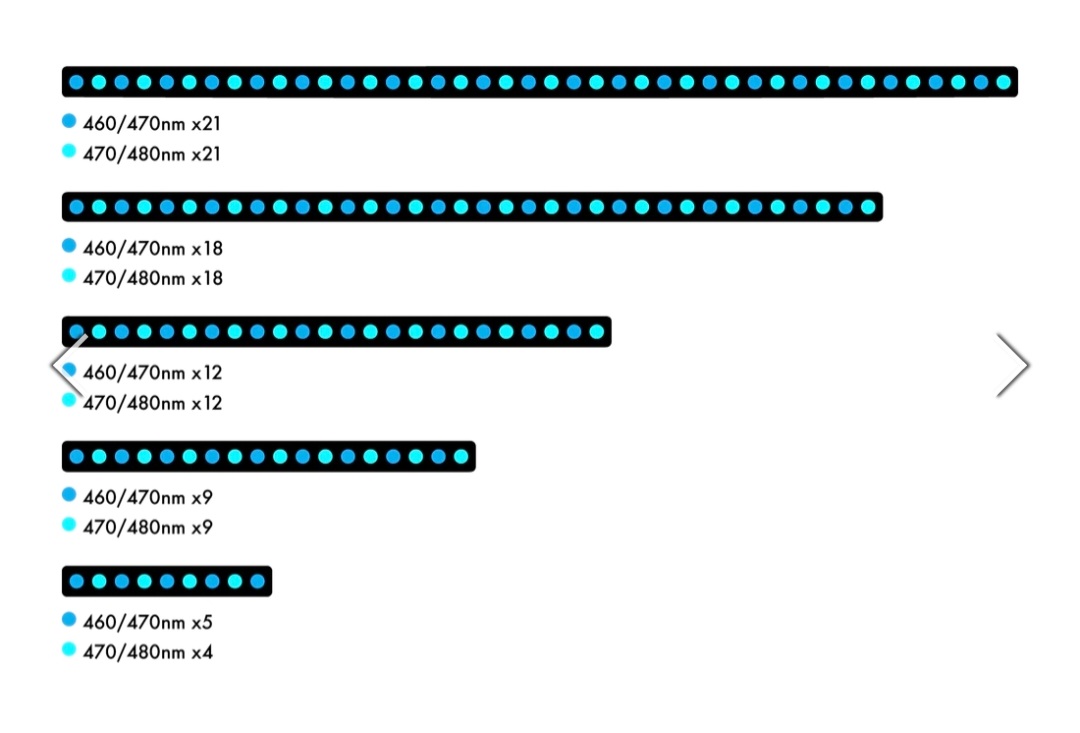 OR4 iCon Blue Sky: O segredo para um recife de aparência natural com cores intensas! Sua mistura única de azul, azul céu e azul gelo (440-500 nm) não só maximiza a fluorescência, como também equilibra o espectro, suavizando os tons azuis escuros e aproximando seu aquário do espectro natural do oceano de 480 nm.