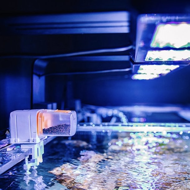 - Smart Feeder é um alimentador automático conveniente e fácilde usar. Perfeito para quando se está a planear uma viagem ou se necessário alimentar remotamente. É possível planejar facilmente o horário de alimentação - frequência e número de voltas - individualmente para cada dia. O dispositivo possui um grande compartimento para alimentos secos, ideal para grânulados e flocos, e um local dedicado para absorver humidade. A aplicação Smart Reef calculará a quantidade de comida restante no recipiente continuamente e notificará quando for necessário recarregá-lo. Design moderno, característico de todos os aparelhos da Reef Factory.