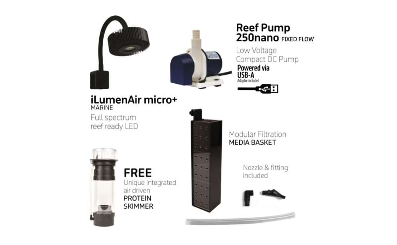 Também está incluído um PROTEIN SKIMMER exclusivo e integrado GRATUITO para operação silenciosa.