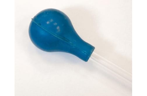 Conta-gotas com cabeça azul e tubo transparente