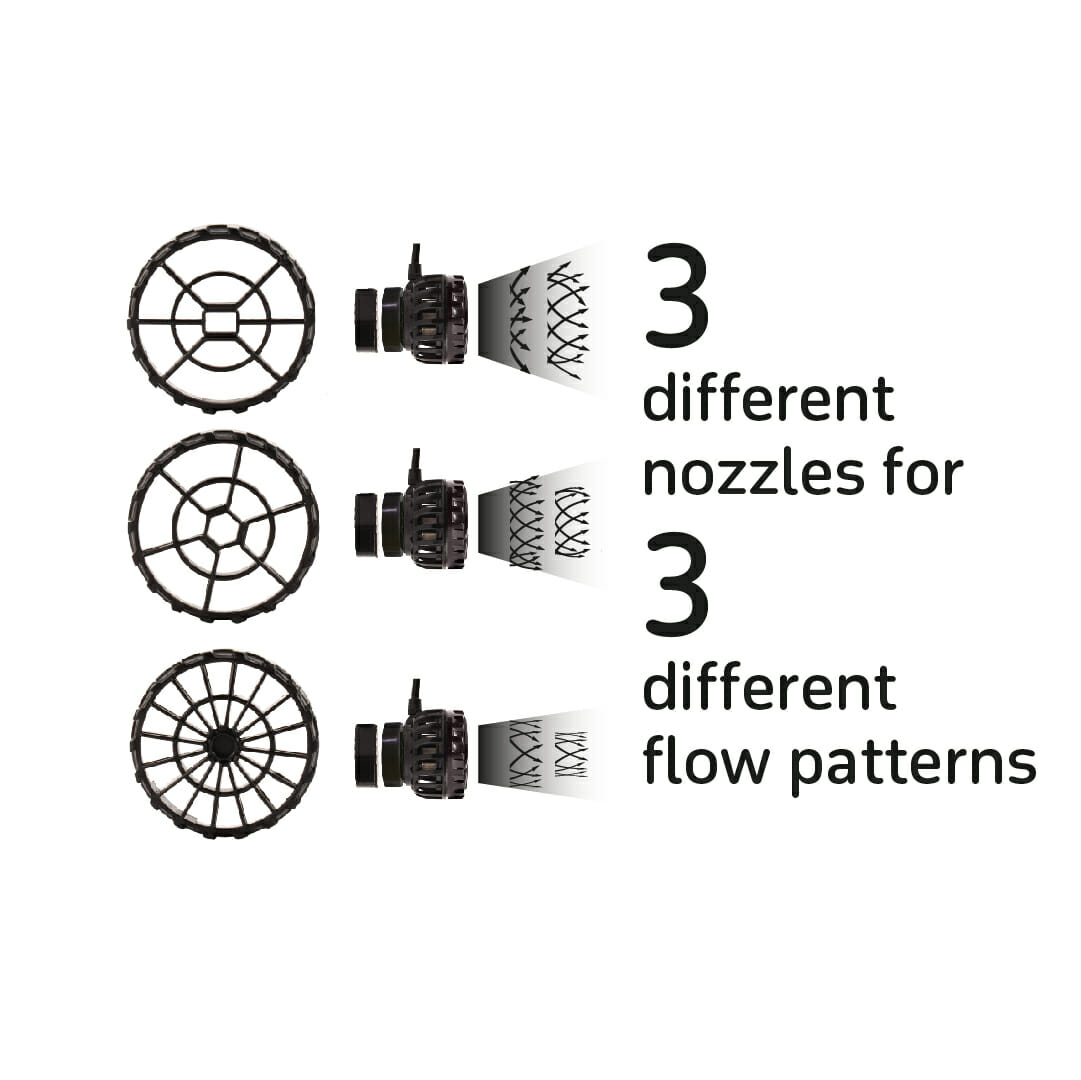 Fornecido com três bicos intercambiáveis para três padrões diferentes de fluxo de água