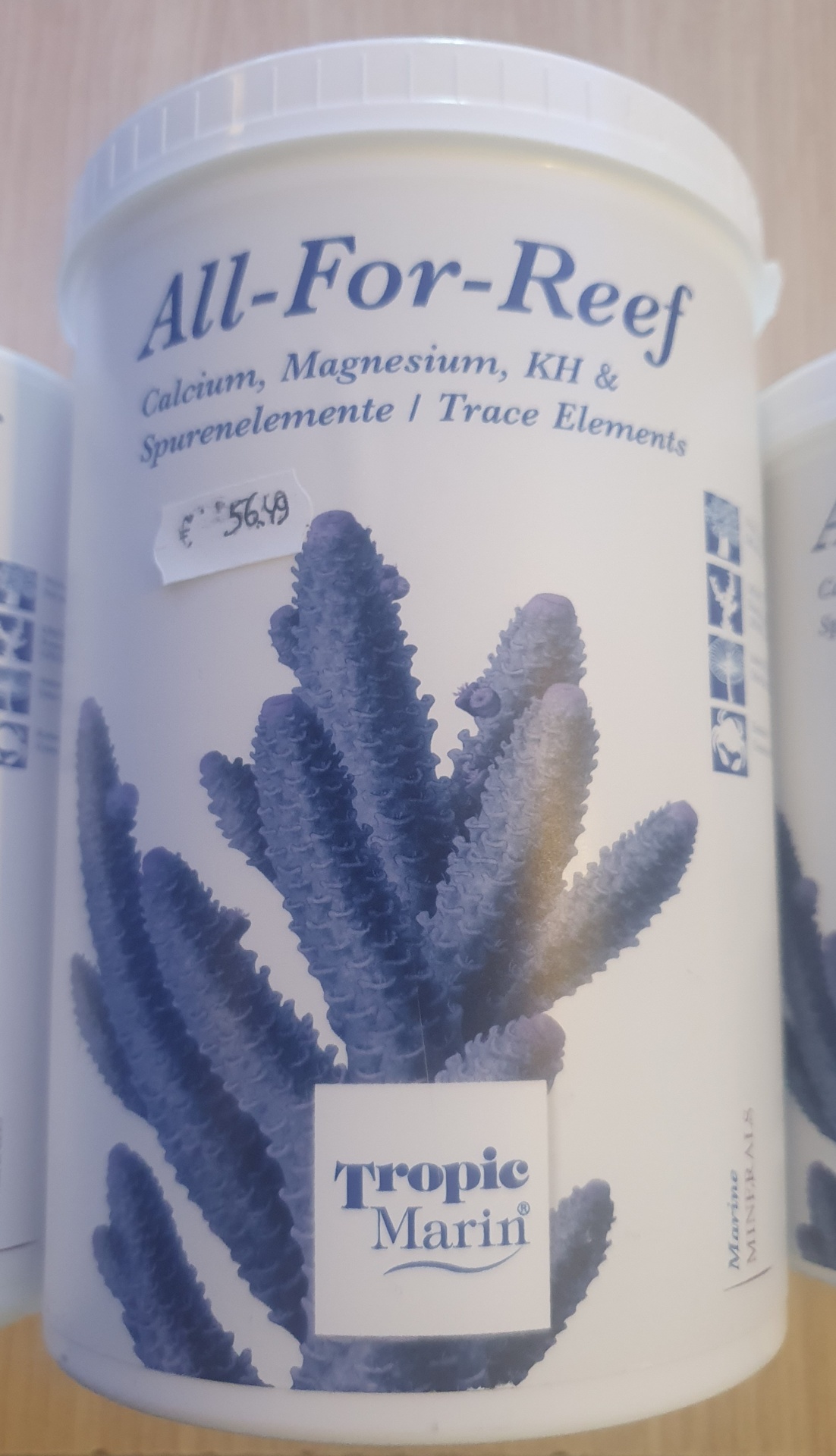 Tropic Marin® ALL-FOR-REEF contém sais orgânicos de cálcio, sais de magnésio, estrôncio e oligoelementos.